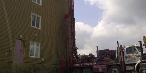 Puits Bernier a été mandaté pour effectuer le forage de soutien d’un mur berlinois. Le mur à été érigé pour soutenir la poussée latérale du terrain meuble autour du bâtiment. L’ouvrage temporaire à servi à la réalisation de travaux sur la fondation autour de l’immeuble.